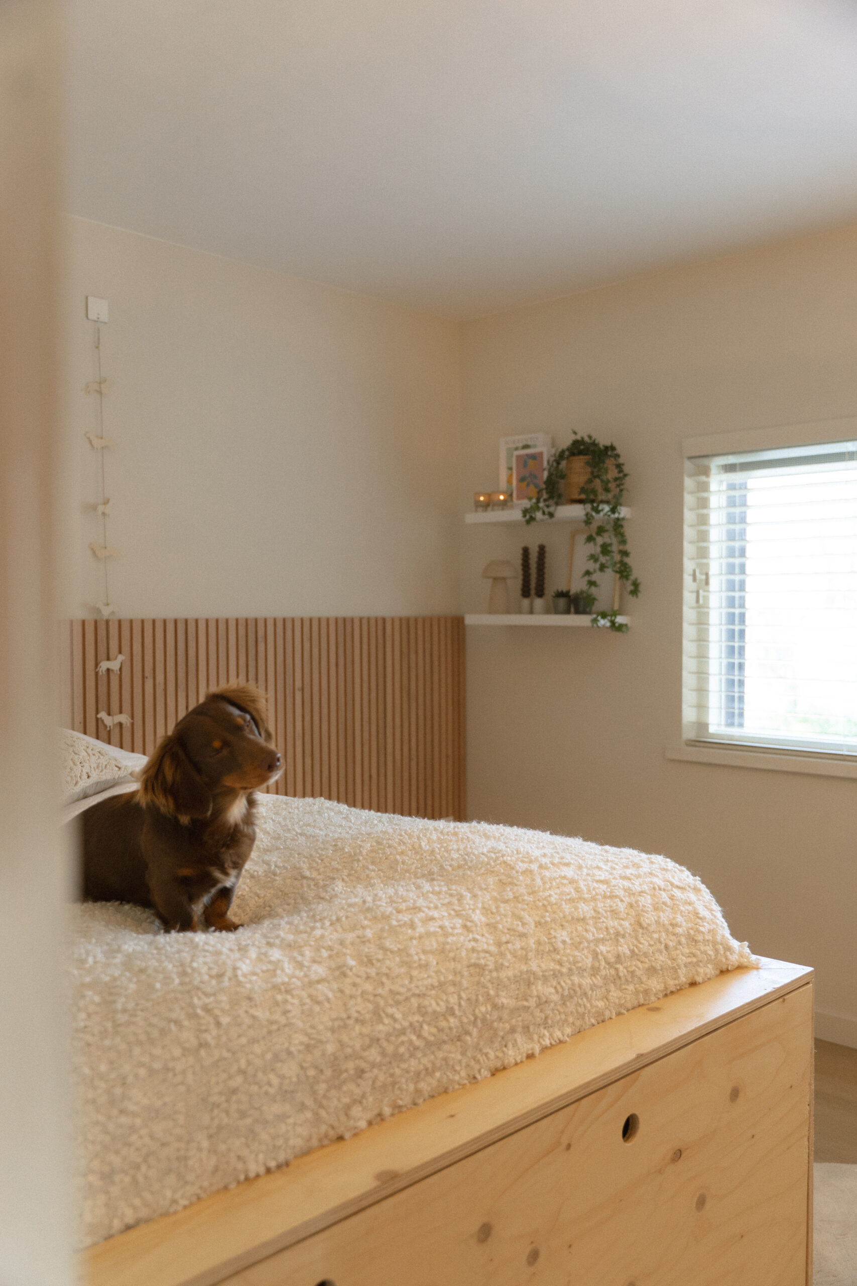 Ik wist totaal niet wat ik met mijn slaapkamer aan moest, vond hem totaal niet gezellig en het was echt een donkere koude ruimte. Het ontbrak aan licht en warmte en nu Lynn het opnieuw heeft ingericht is dat helemaal opgelost. Ik ben super blij dat Lynn zulke goeie ideeën had voor mijn kamer!